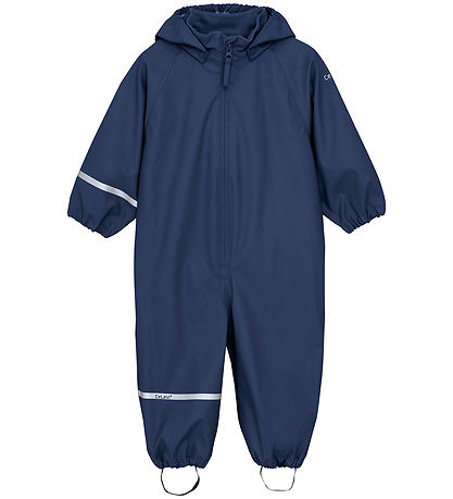 The CeLaVi rainsuit has a removable hood that is Fast with push buttons. The sleeves and trouser legs have elasticated edges, and there are adjustable elastic straps to put under footwear. The collar is lined with soft fleece.