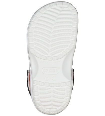 Crocs sandals are a closed model with holes over the toes. At the back there is a heel strap that can be flipped up and sits over the instep. The Sandals are white on the inside with soft insoles that are shaped to the feet. Under the bottom there is a practical tread pattern that ensures a good foothold. The Sandals are flexible and lightweight.