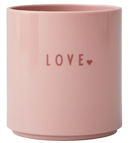 Practical Design Letters cup in pink, with "Mini" and a heart on one side and "Love" and a heart on the other.