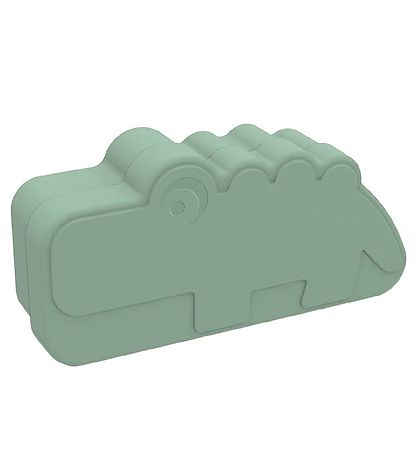 Lovely Done By Deer lunchbox in dusty green with the shape of a beautiful crocodile.