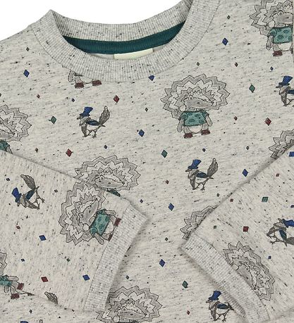 Wonderful En Fant sweatshirt in grey melange with smart allover print of animals and diamonds in green, blue and red.