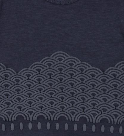 The Fixoni blouse has long sleeves and it can be opened with press studs on the left shoulder. On the front, there is a heat-stamped rubber print of a wavy pattern, which has a cool 3D effect.