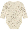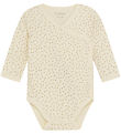 Cute Fixoni wrap bodysuit in white with an allover print of flowers in pink shades.