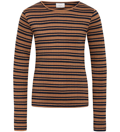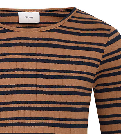Nice Grunt blouse in brown with horizontal straight, navy stripes and with a wide ribbed structure.