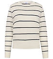 Beautiful Grunt blouse in navy knitted with a light white melange effect. The Blouse has a high throat with a card zipper, and it has long sleeves and soft ribbed edges.