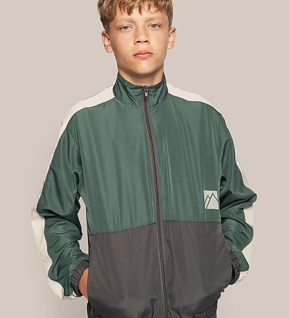 Cool Grunt jacket where the top half is dark green and the bottom is dark grey.