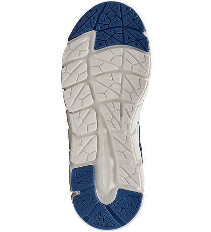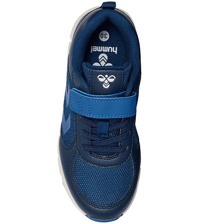 The Hummel shoes have elastic laces over the foot and are closed at the top with a practical Velcro strap. There is a practical strap at the back, which makes it easier to put the shoes on. The inside has blue textile and removable insoles. The shoes have white outsoles in lightweight and flexible material with a practical tread pattern under the bottom.