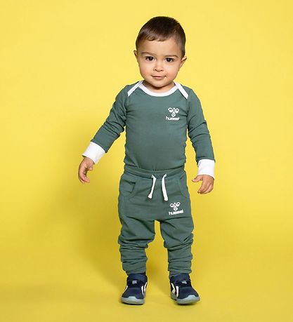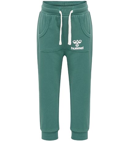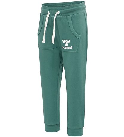 Beautiful Hummel sweatpants in dusty green with a print of the brand logo on the left thigh.