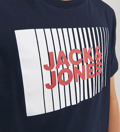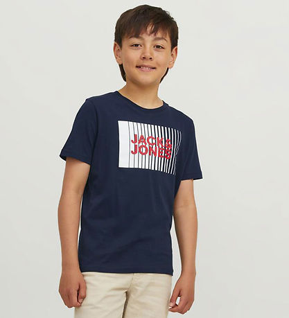 Model: JJECorp Logo Tee Play SS O-Neck Noos JNR, Style: 12237411, Colour: Navy Blazer