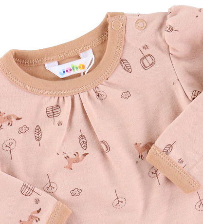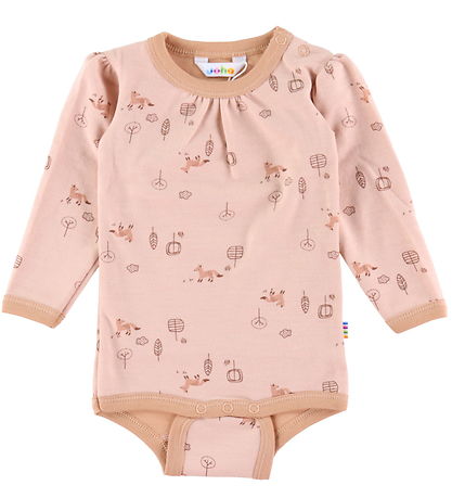 Beautiful Joha bodysuit in a peach shade with a sweet print of small foxes and nature motifs.