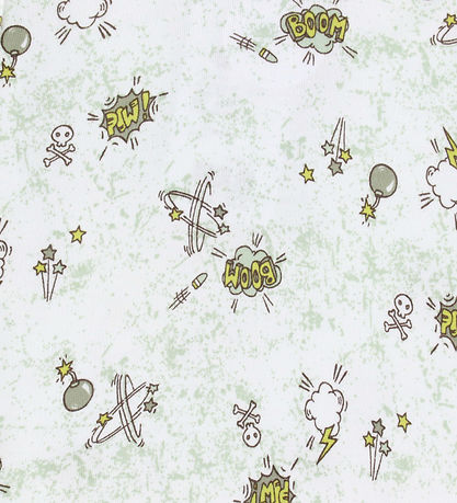 Delicious Joha nightsuit in off white with dust green details, decorated by an allover print with classic cartoon motifs and effects.
