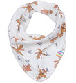 Fine Joha teething bib in off white with a sweet allover print of scarecrows and small birds in beige and brown shades.
