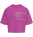 The Kids Only t-shirt has short sleeves and a round neckline with a narrow edge. At the left shoulder there is a drop-shaped cutout, and the t-shirt is made of a soft and stretchy cotton quality.
