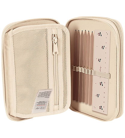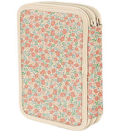 Charming Konges Sløjd pencil case in beige with a colorful floral print.
