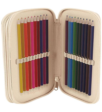 The Konges Sløjd pencil case has a square design and includes these writing utensils: