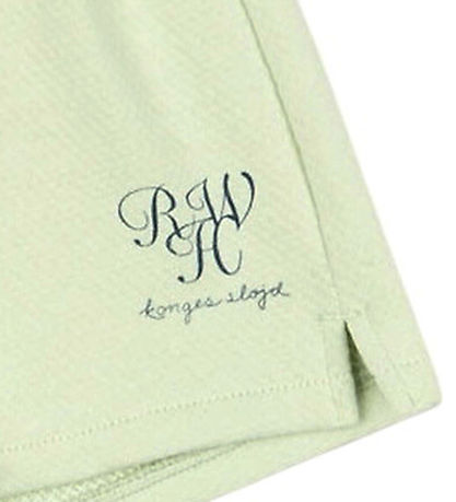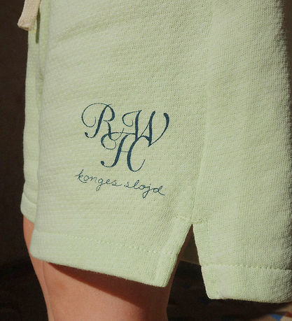 Cool sweat shorts from Konges Sløjd in mint green with a dark blue logo print on the left thigh. The Shorts have an elastic waist with adjustable lace for an optimal fit and small slits in the sides.