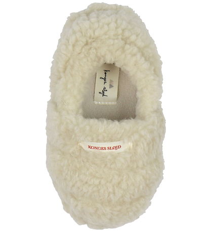 Beautiful Konges Sløjd slippers in beige plys with a little logo patch on the foot.