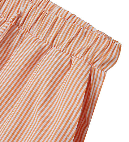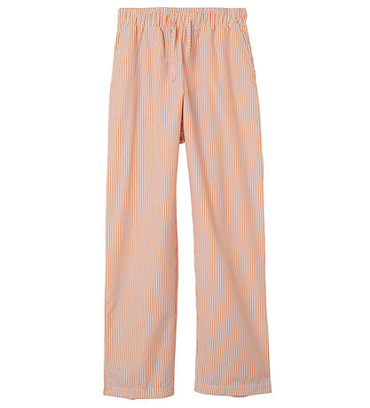 Fine LMTD trousers in narrow, vertical stripes in light orange and white.