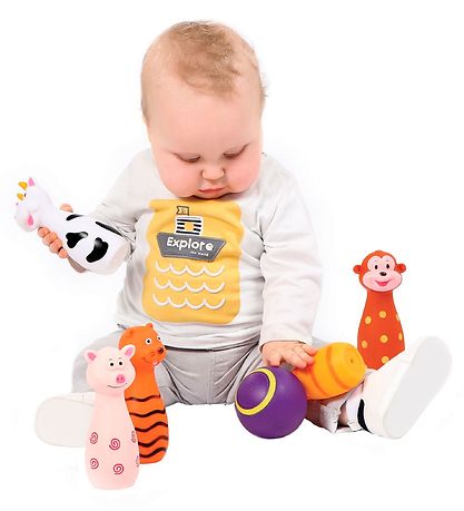 The Ludi bowling set is made in soft plastic for a more comfortable structure. It allows the child to easily hold on to the ball. When the children roll the ball, the child improves its coordination and motor skills.