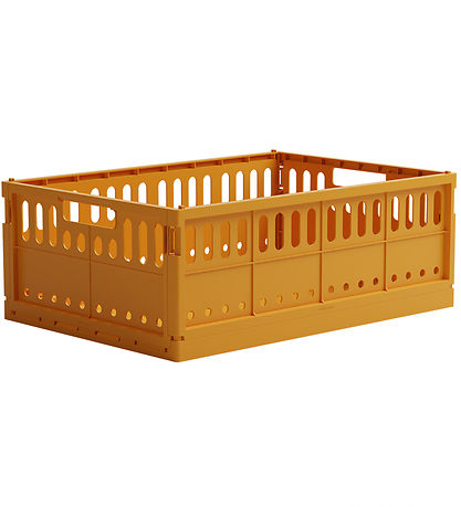 Smart Made Crate foldable box in mustard yellow made of plastic with holes and grooves. The folding box is in maxi size.