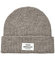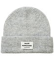 Beautiful Mads Nørgaard beanie in melange grey in a knitted quality with a nice rib structure.