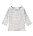 Elegant blouse from Mads Nørgaard in a deep grey shade. The Blouse has an eye-catching white logo across the chest with the text NØRGAARD. Designed in a coarse ribbed structure that adds a classic style. The round neckline harmonizes with the long sleeves and ribbed edges that complete the look.