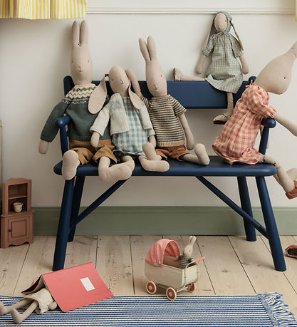 The Maileg rabbit is soft and can be played with like a doll, and the clothes can be taken on and off. The body is filled with PE pellets, which gives it more weight.