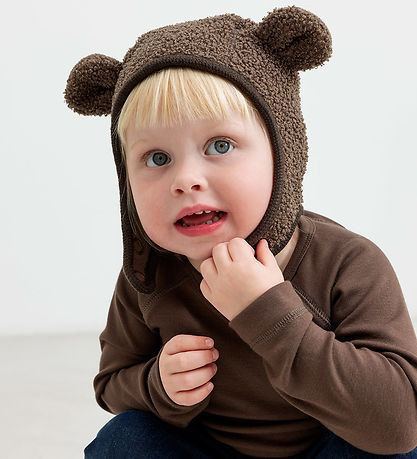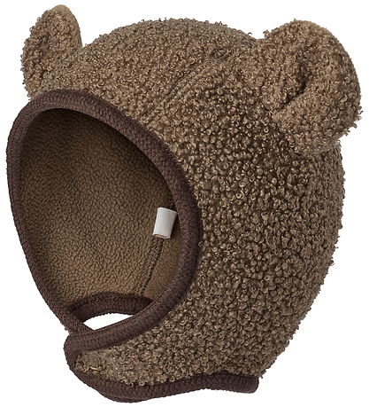 Beautiful MarMar beanie in brown teddy fleece and with dark brown details.