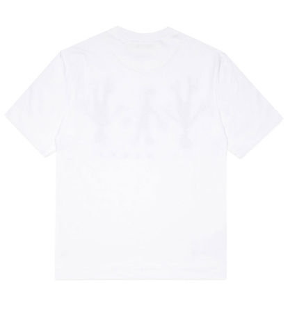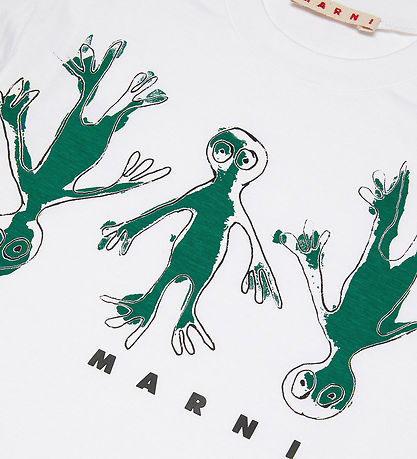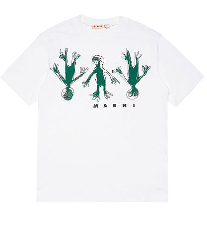 Smart Marni t-shirt in white, and 3 green beings are printed on the front.