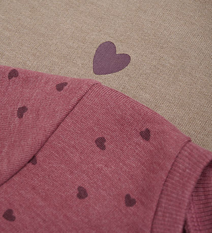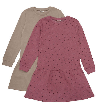 Lovely Minymo dresses with long sleeves sold as a 2-Pack in a deep pink shade with heart print all over and light brown. The Dresses have a nice ruffle finish and give a sweet and playful look for any occasion.
