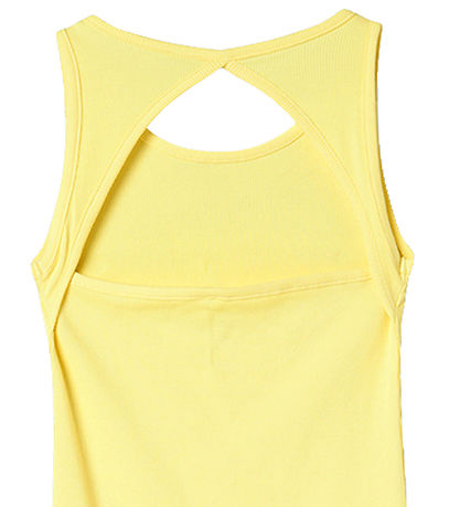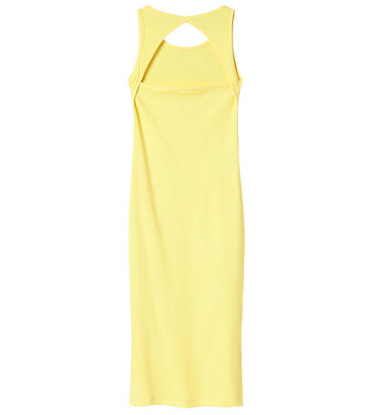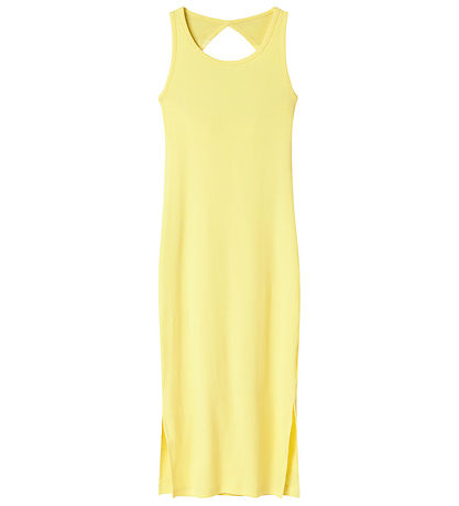 Elegant Name It dress in light yellow with a nice ribbed structure. The Name It dress has a tight fit and is sleeveless. At the back there is a triangular neckline, which gives a nice effect. The Dress is a long model with a slit at the bottom on both sides.