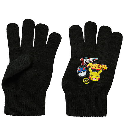 Practical Name It gloves in a stylish black shade. The Name It gloves have a nice Pokémon print with Pikachu and Poké Ball motifs, which gives a fun and colorful twist to the simple design.
