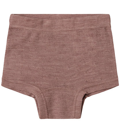 Stylish Name It hipsters in dusty purple with a fine pointelle. The hipsters have a good elastic at the waist, which ensures a comfortable fit. They are made of soft and breathable merino wool.
