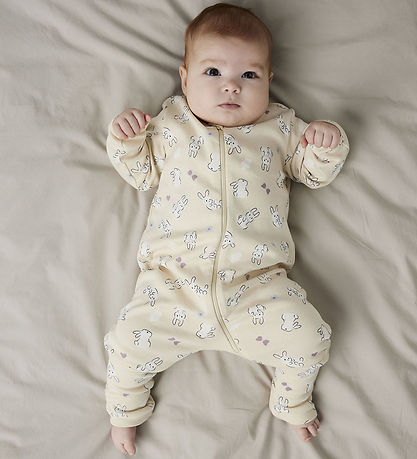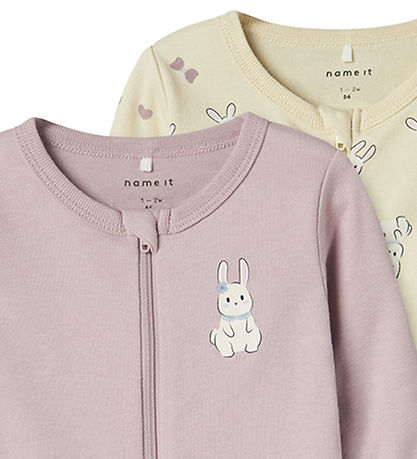 Fine Name It nightsuits sold in a 2-Pack in beige and purple. One nightsuit has an all over print of little bunnies and the other has a simple bunny in the left corner. The Nightsuits have long sleeves and practical zips that make dressing quick and easy.