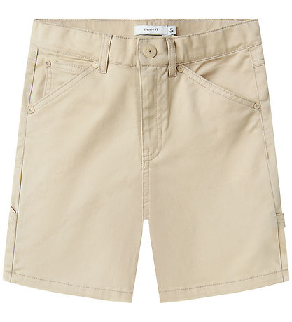 Practical Name It shorts in a light beige colour with classic details like front pockets. The Shorts are ideal for warm days and allow for movement and comfort. The Name It shorts are a good choice for your summer wardrobe.