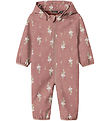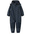 The Name It softshell suit opens at the front with a zipper with chin guard and internal wind pole, and has extra reinforcements on the knees and on the seat. There are reflective piping around the shoulders, and a reflective print in the middle of the back. There is an open pocket on each side at the front.