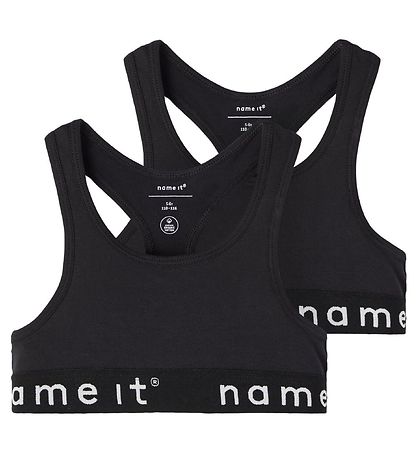 Beautiful Name It tops in black with a black elastic edge with "Name It" written on in white.