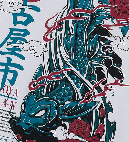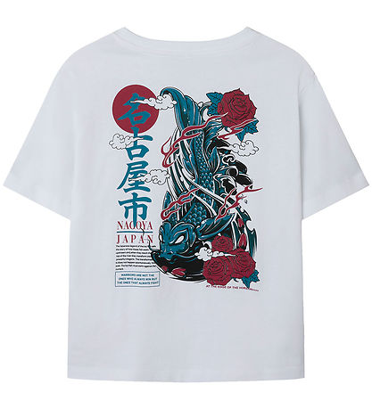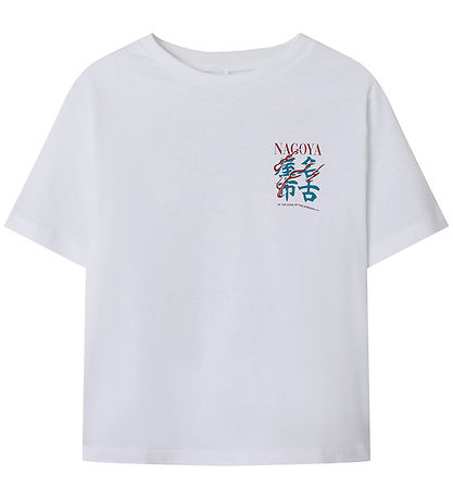 Nice Name It t-shirt with short sleeves in white with a colorful print on the front, which includes the text "NAGOYA". The back is adorned with a large print, inspired by Japan. The T-shirt is ideal for any ordinary day.