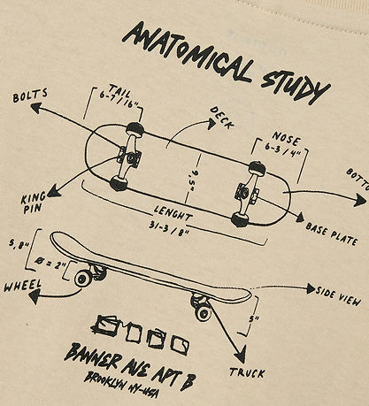 Beautiful Name It t-shirt with short sleeves in a light beige colour. It has a cool graphic print with a skateboard and text on the front.