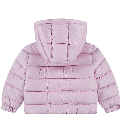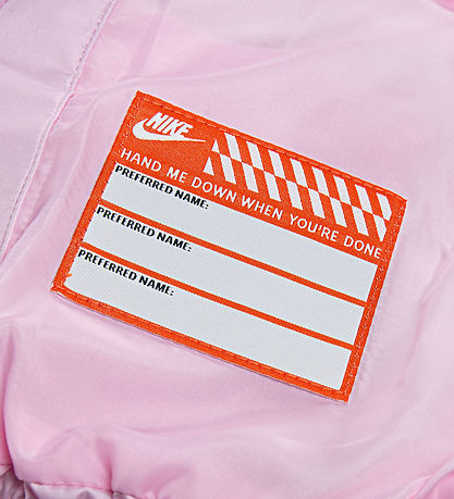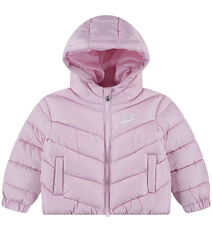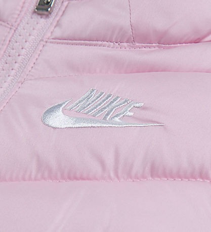Nice Nike puffer jacket in pink with an embroidered, white logo on the left chest and slanted seams.