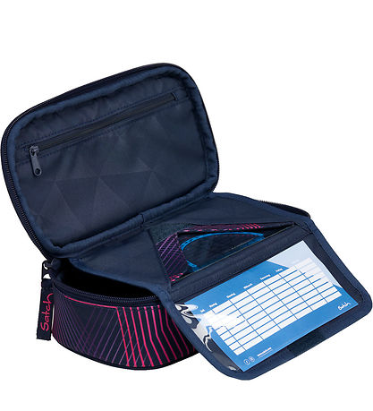 The Satch pencil case is a box pencil case with fixed sides. It opens with a zipper, and in the lid there is a zipper pocket. The Pencil case consists of one large Rum with a lid at the top that can be tilted up.