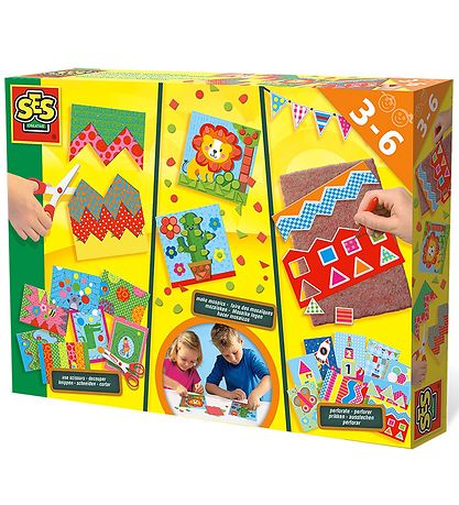 The Ses Creative beginner set is a perfect set so that the child can learn to cut, make mosaics and perforate. It is both fun and educational for the little ones and it is up to many hours of fun and creativity.