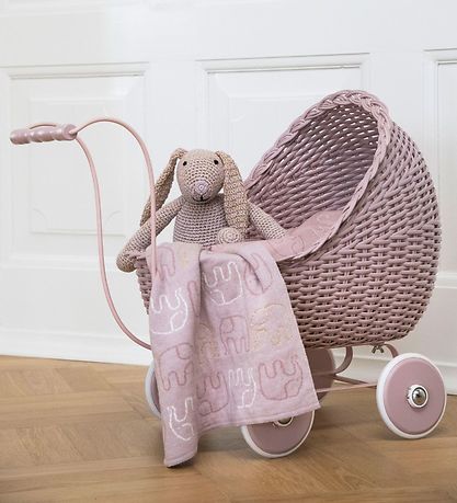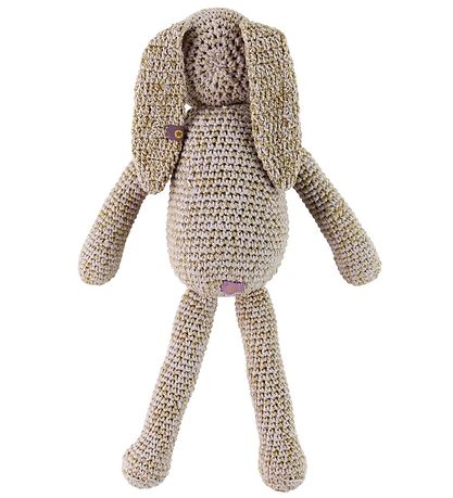Beautiful Smallstuff soft toy in knitted pink with glitter and shaped like a rabbit.