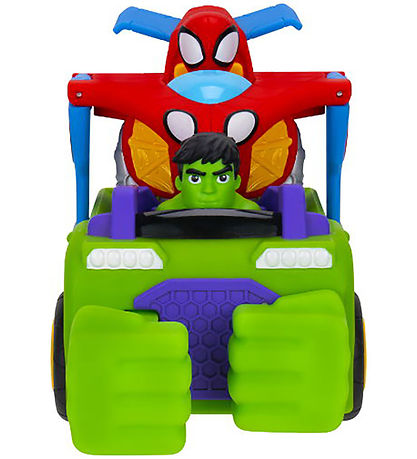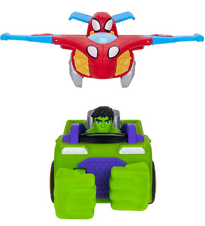 Great Spidey vehicles that depict a flight with Spidey and a car with the action figure Hulk. The vehicles can be put together to become one large car. The Car can swing out its arms at the front, and the plane's wings are movable.