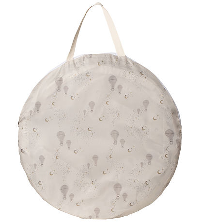 Fun That's Mine play tunnel in cream white with an allover print of hot air balloons, moons and stars in beige and yellow colours.