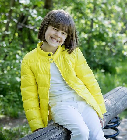 Beautiful Ver de Terre down jacket in plain yellow. The down jacket is made of a smooth woven material with horizontal seams that give a classic down jacket look.
