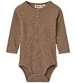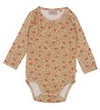 The Wheat bodysuit has long sleeves and opens over the left shoulder and between the legs with practical push buttons. The Bodysuit has narrow ribbed edges along the throat and the leg openings, which ensures an optimal fit.