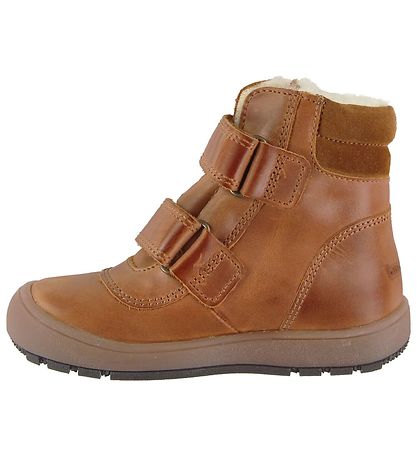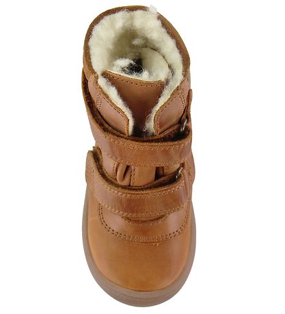 The Bundgaard winter boots have a high shaft. They are closed over the ankle with two velcro straps, which can be cut without the straps going up. The boots have a fixed heel cape, and on the inside they are lined with soft, white wool. At the bottom they have a soft and removable insole.