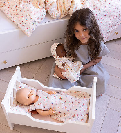 The Cam Cam Copenhagen doll sleeping bag opens with push buttons at the shoulders, and it fits perfectly with the Cam Cam Copenhagen doll bed and doll lift. The doll sleeping bag also matches the baby and junior bedding, so the whole family can Have the same bedding.