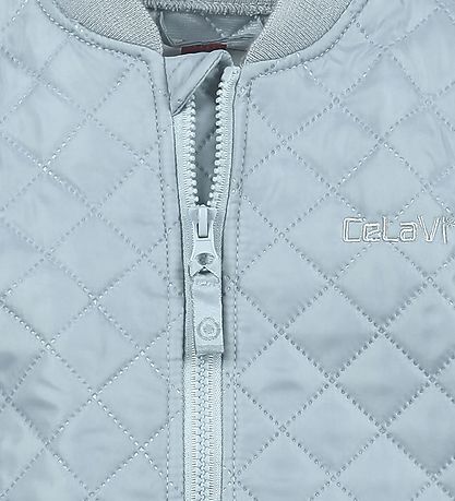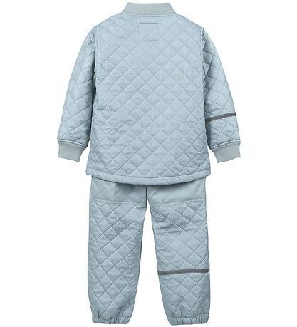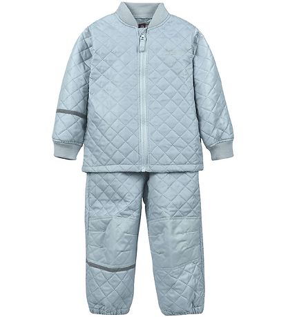 Lovely CeLaVi thermo set consisting of a thermo jacket and a pair of thermo trousers in light blue with a quilted structure. The name "CeLaVi" is embroidered on the left chest of the thermal jacket.